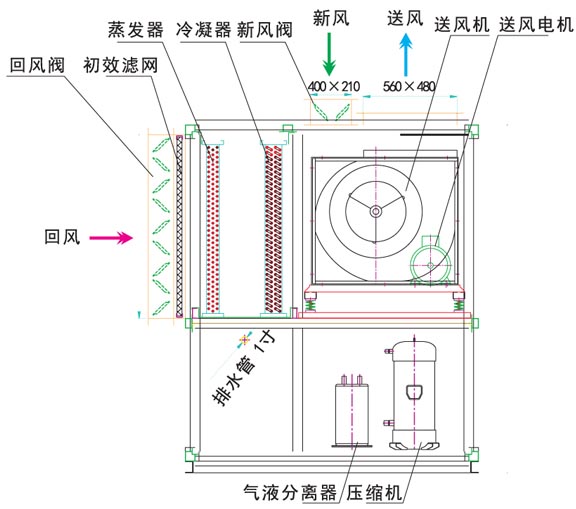 熱少龍三集一體室內泳池恒溫除濕熱泵 HW系列結構展示: