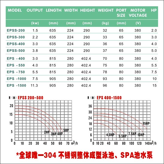 名稱(chēng):不銹鋼水泵 304不銹鋼整體成型泳池、SPA池水泵